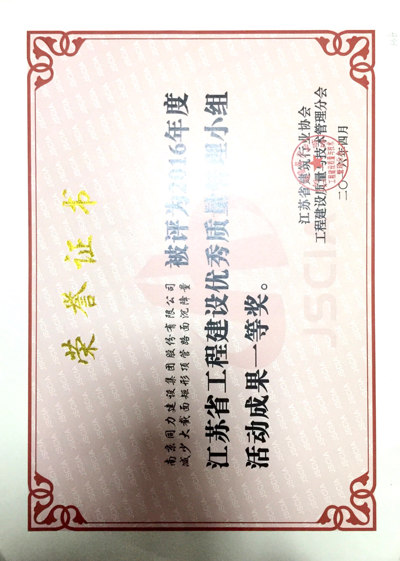 “同力人”QC小組獲得“2016年度江蘇省市...