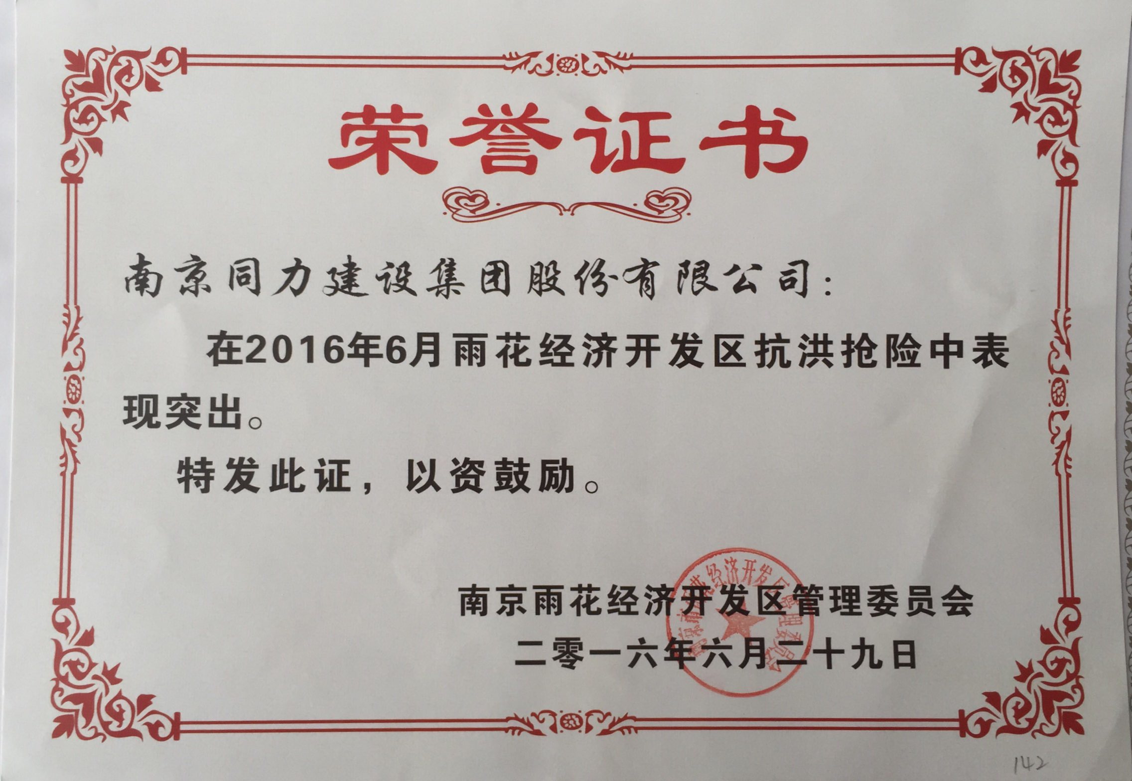 公司受到“雨花經(jīng)濟開發(fā)區(qū)抗洪搶險表彰...