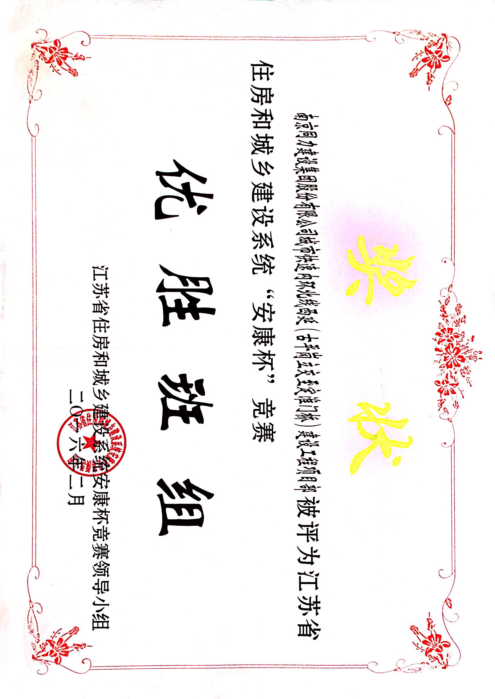 公司被評為“江蘇省住房和城鄉(xiāng)建設(shè)系統(tǒng)...
