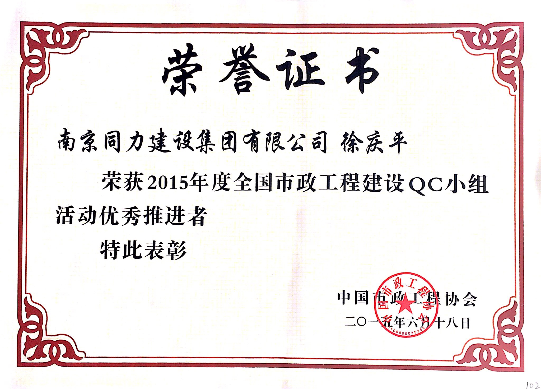 公司“筑路人”QC小組榮獲2015年度全國市...