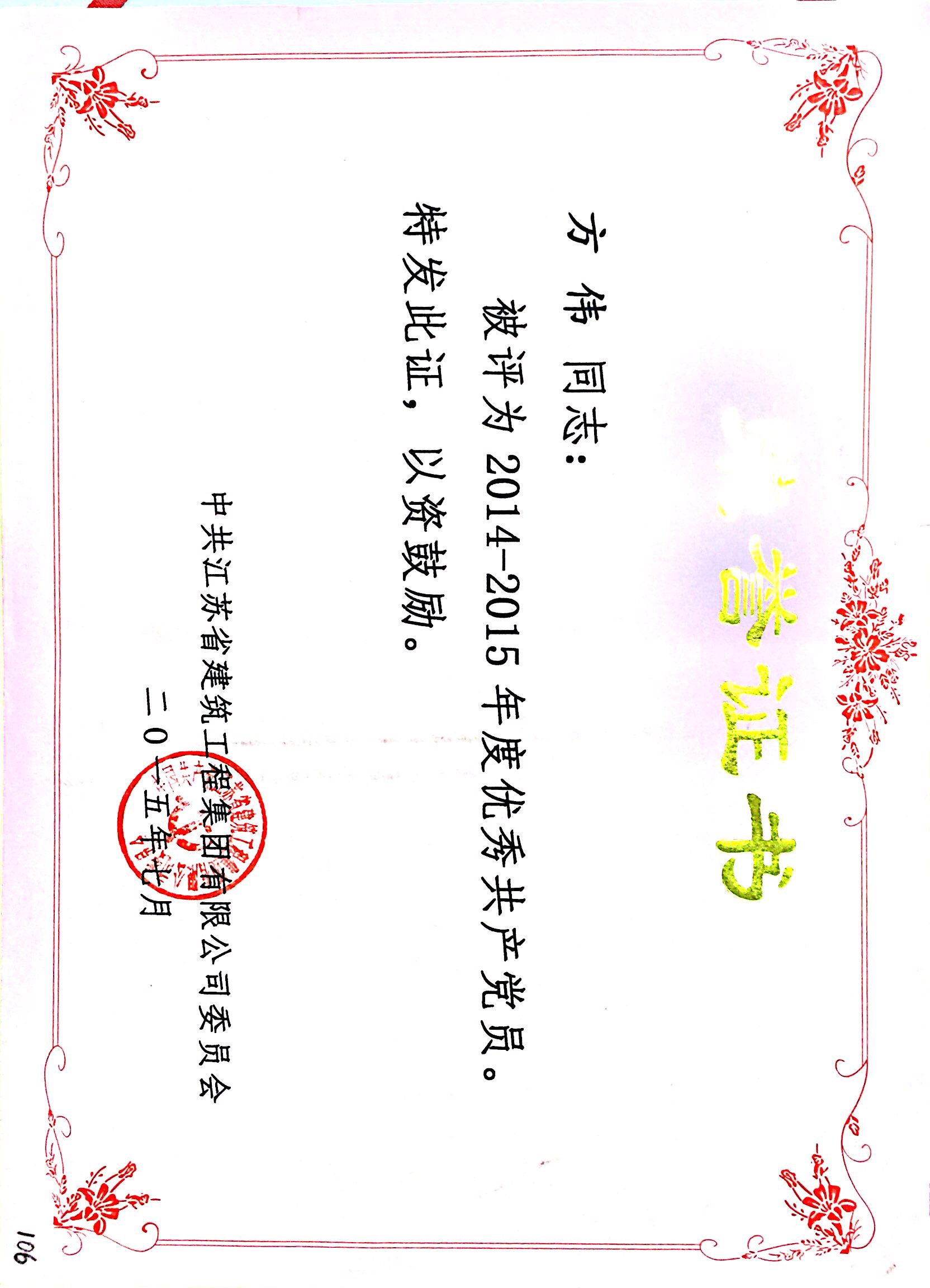 公司方偉被評為2014-2015年度優(yōu)秀共產(chǎn)...