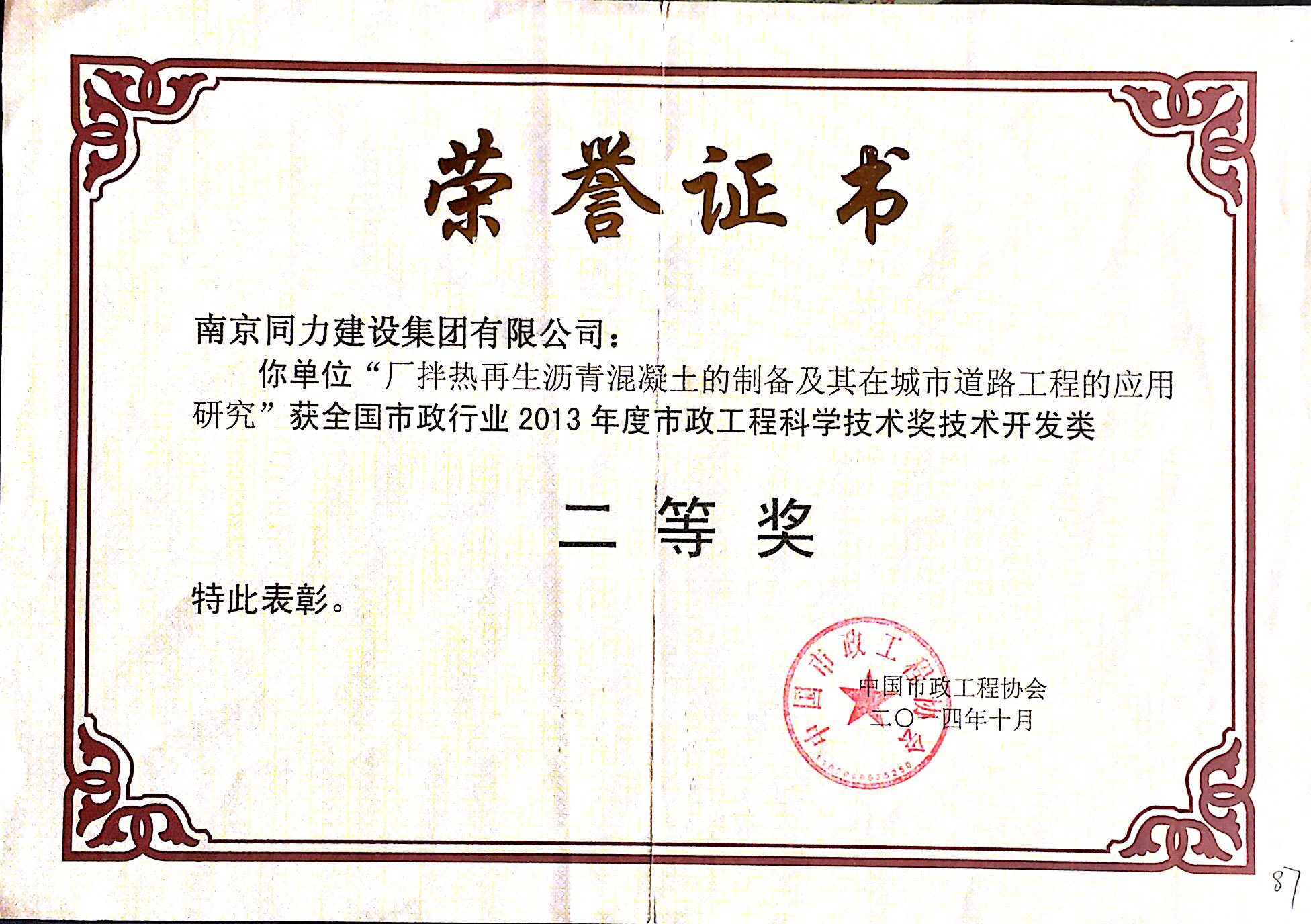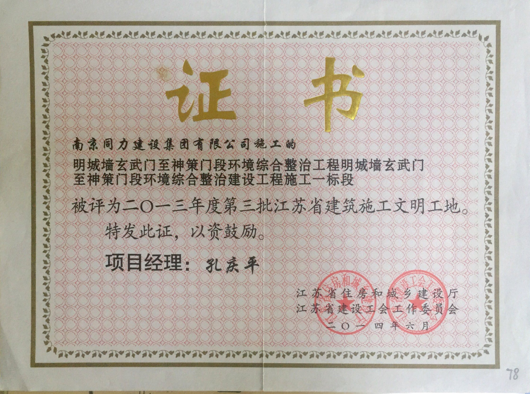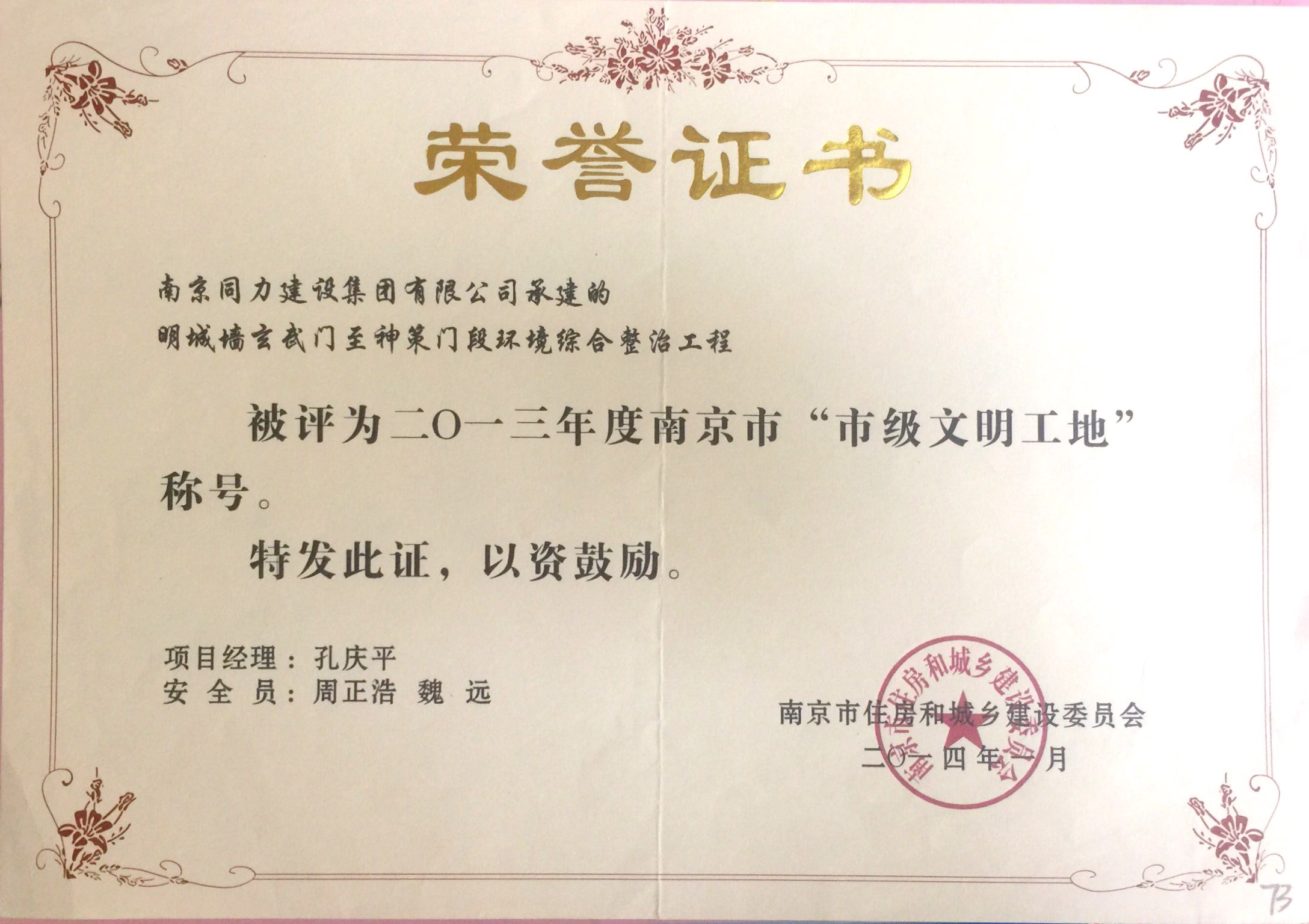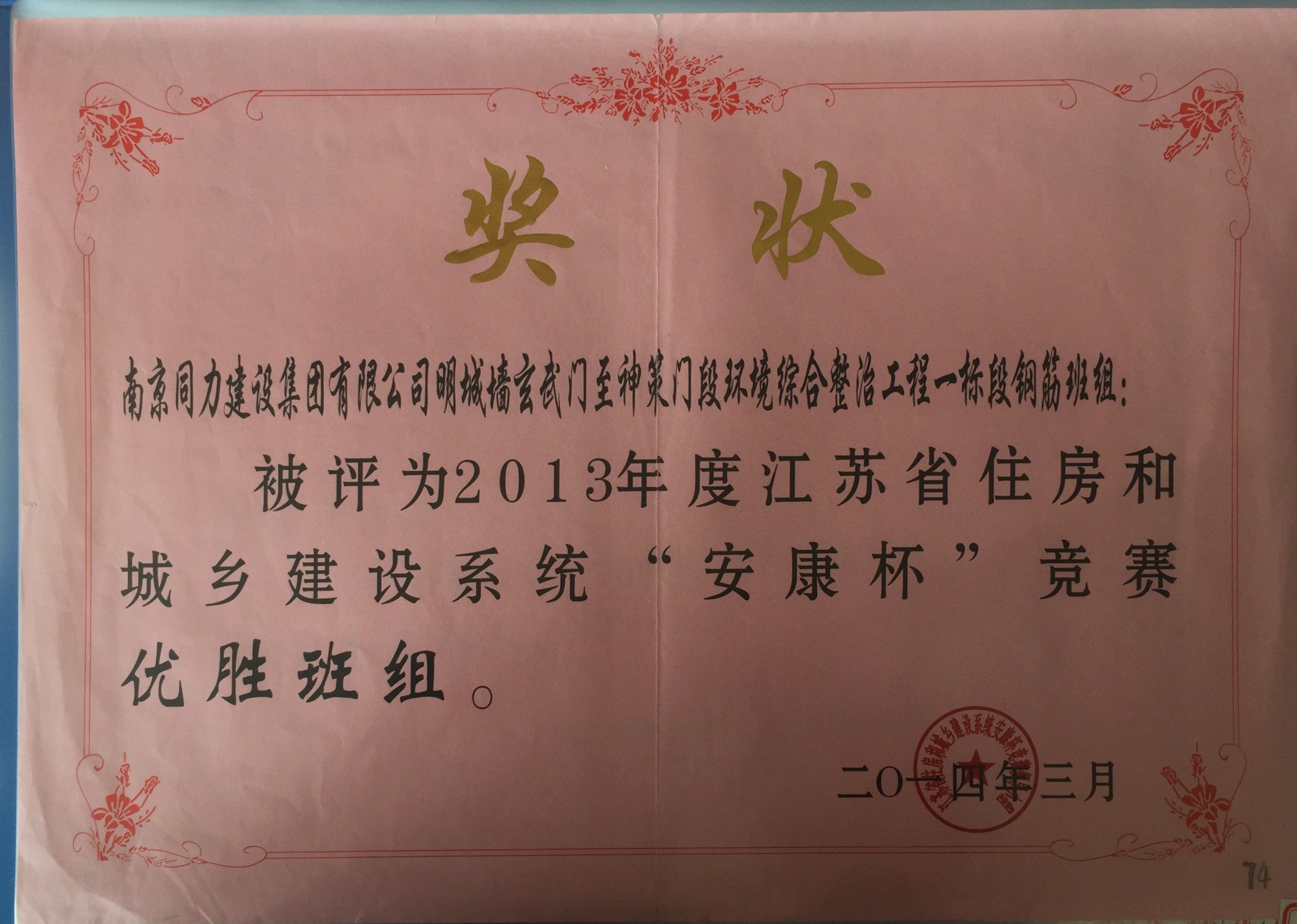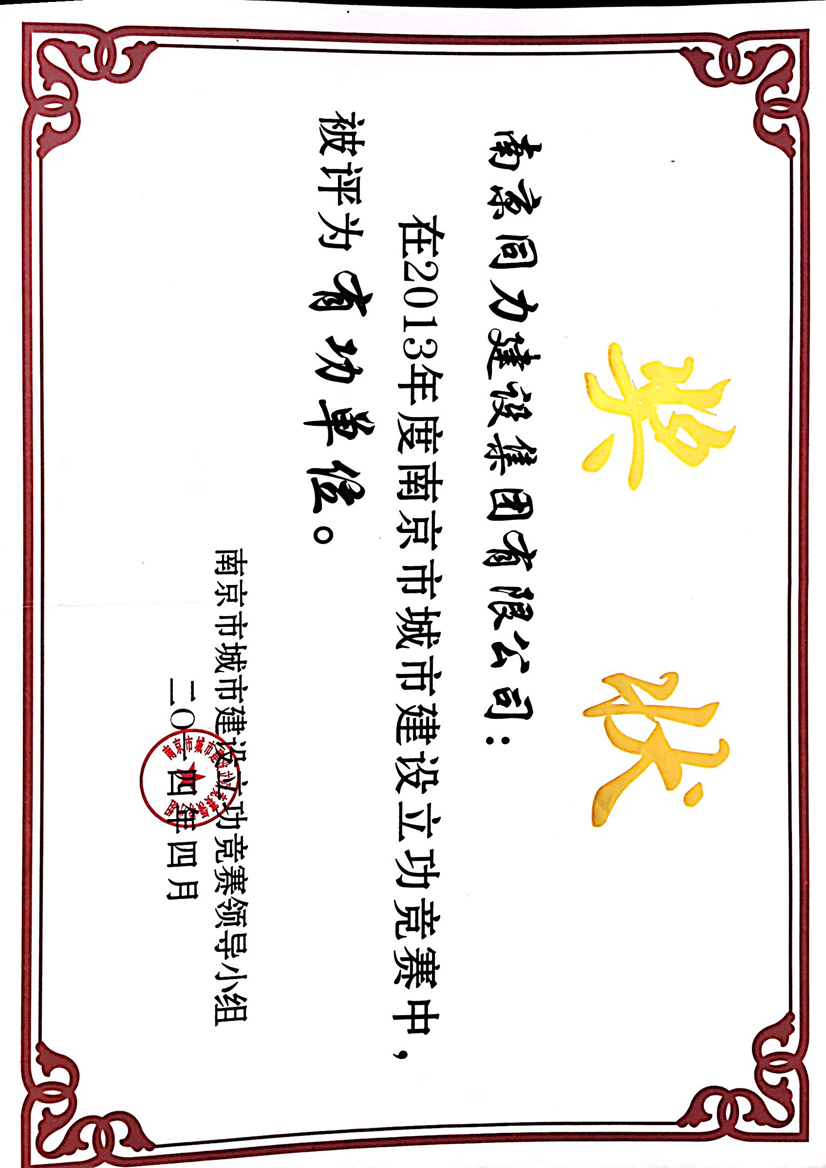 在2013年度南京市城市建設(shè)立功競賽中被...