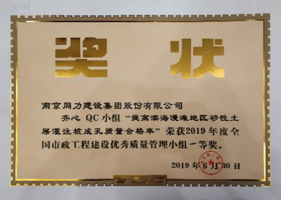 本次發(fā)布會上,同力建設參賽的兩項QC成果均來自項目施工一線,成果質量水平較高,經過激烈角逐,同力人QC小組的《降低風化巖層三重管高壓旋噴樁水泥損耗率》和齊心QC小組的《提高濱海漫灘地區(qū)砂性土層灌注樁成孔一次驗收合格率》均榮獲一等獎,同力建設憑借多年來在QC小組活動中的突出成績和表現(xiàn),再次榮獲“2019年度全國市政工程建設QC小組活動優(yōu)秀企業(yè)”稱號,徐慶平獲得“2019年度全國市政工程建設QC小組活動優(yōu)秀推進者”,此次再獲大獎是對同力建設多年來QC小組活動成績的一種肯定,更激勵同力人繼續(xù)努力開展QC小組活動。