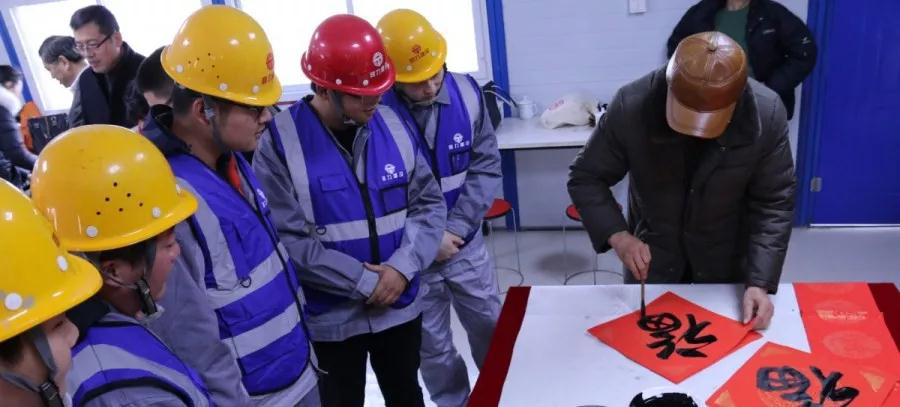 在與項(xiàng)目管理人員以及民工代表深入交流后,民盟市委領(lǐng)導(dǎo)向在場的工作人員送上新春的祝福,接著來自南京民盟書畫院的書法家們現(xiàn)場書寫春聯(lián)以及福字,屋里屋外洋溢著喜悅的氣息,慰問活動(dòng)在南京民盟歌舞團(tuán)藝術(shù)家的歌聲中走向高潮。