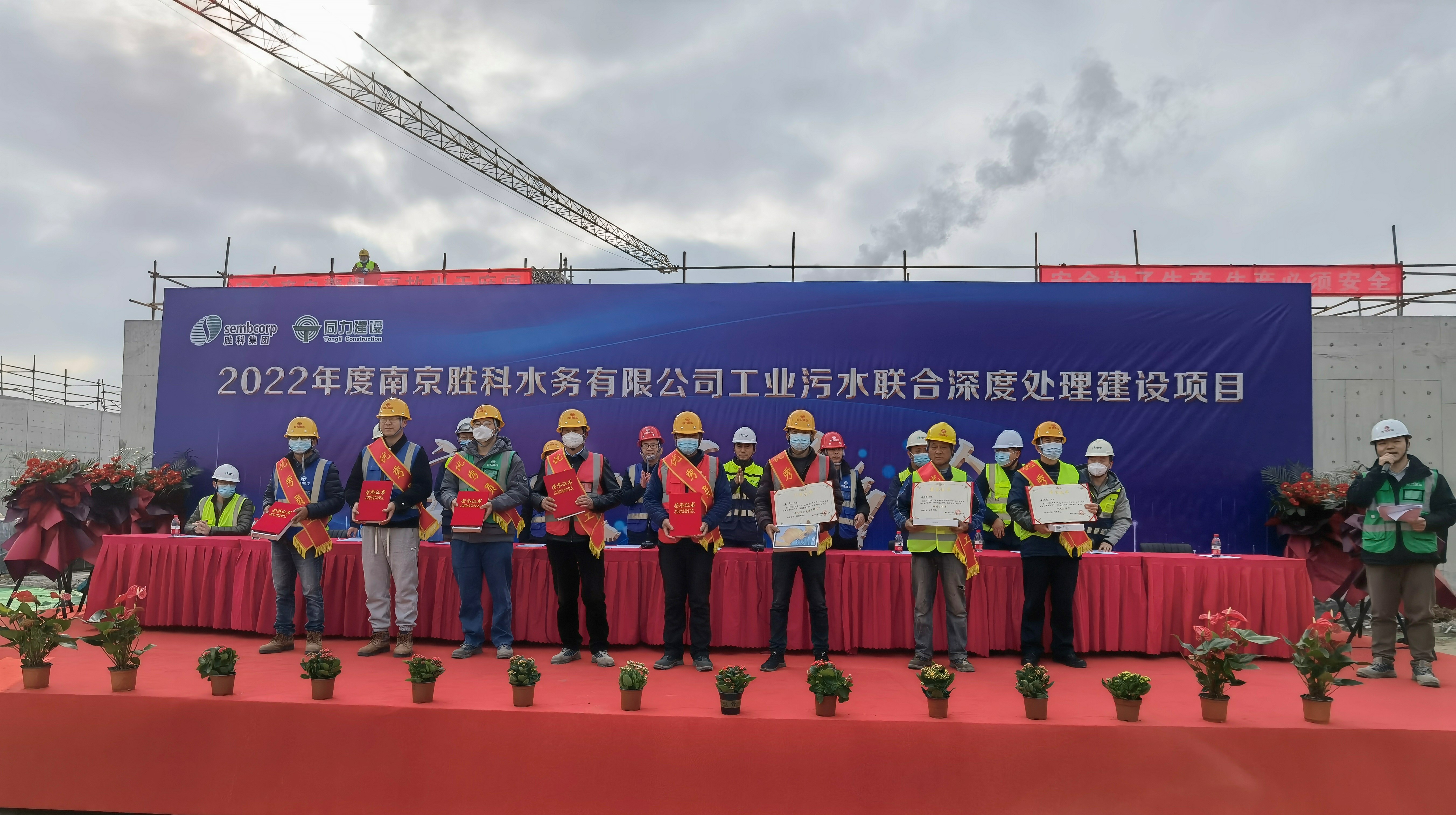大會宣讀《關于2022年度南京勝科水務有限公司工業(yè)污水聯(lián)合深度處理建設項目安全表彰人員名單》,共計8人,并對現(xiàn)場所以參建工作者給予獎勵,參會領導給予獲獎人員頒發(fā)榮譽證書及獎品。